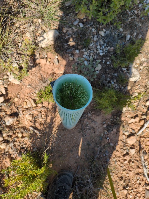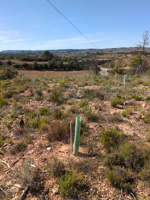 Una reciente visita al sitio de plantación Bellprat II en España ofreció una visión del progreso de los esfuerzos de reforestación. La parcela parecía estar prosperando, con una tasa de establecimiento estimada muy alta, lo que sugiere que las plántulas se están adaptando bien a su entorno.
