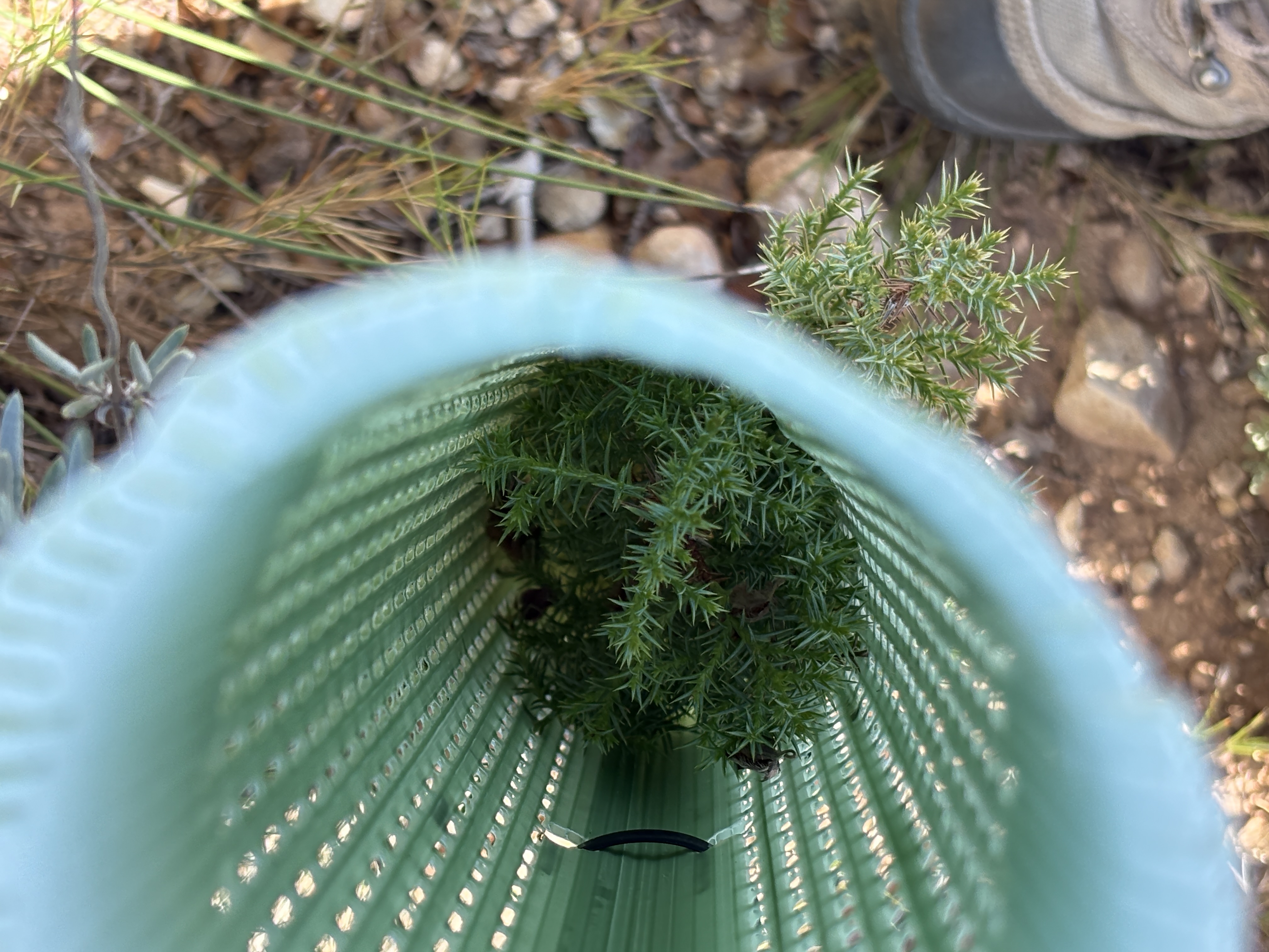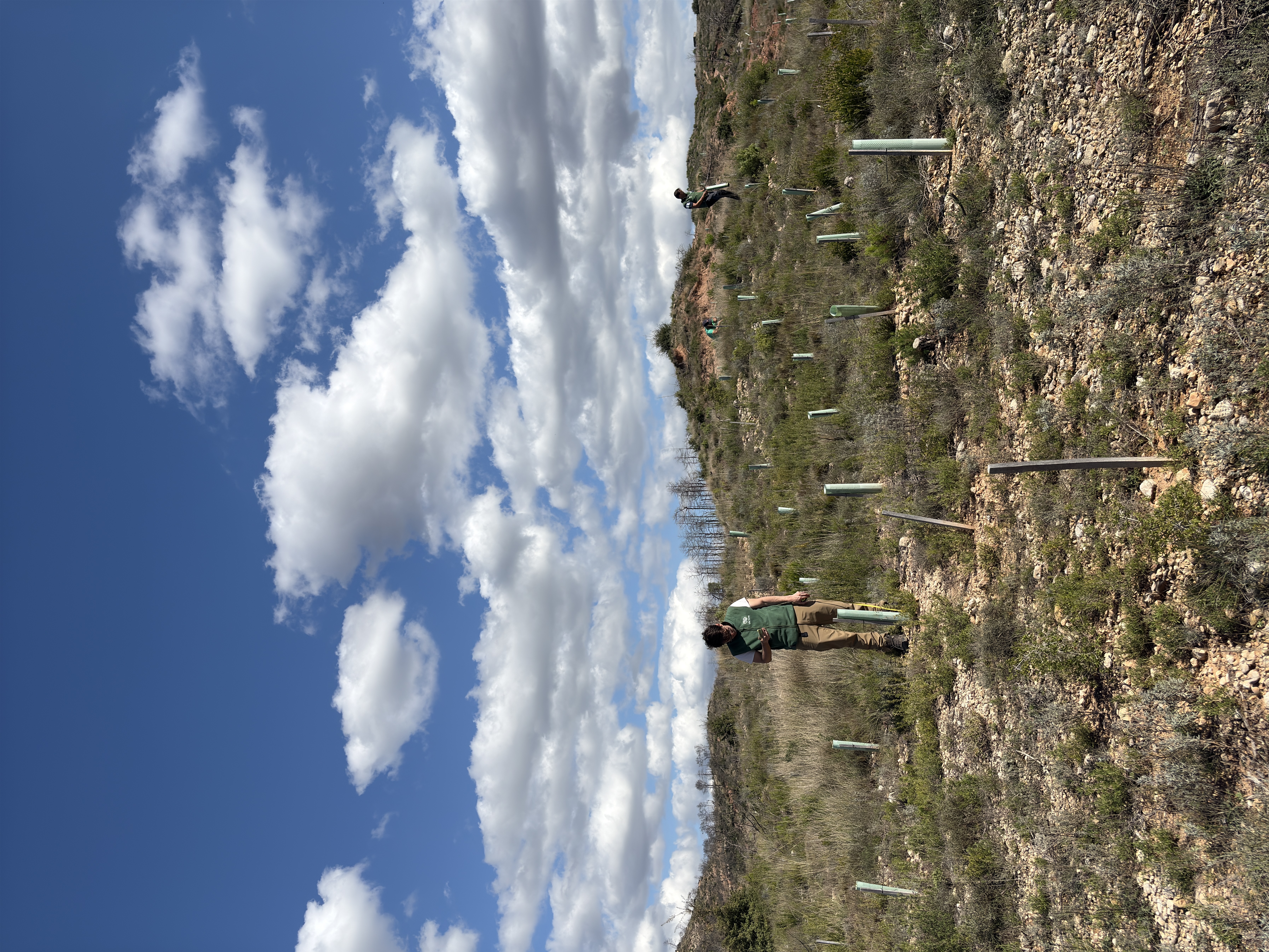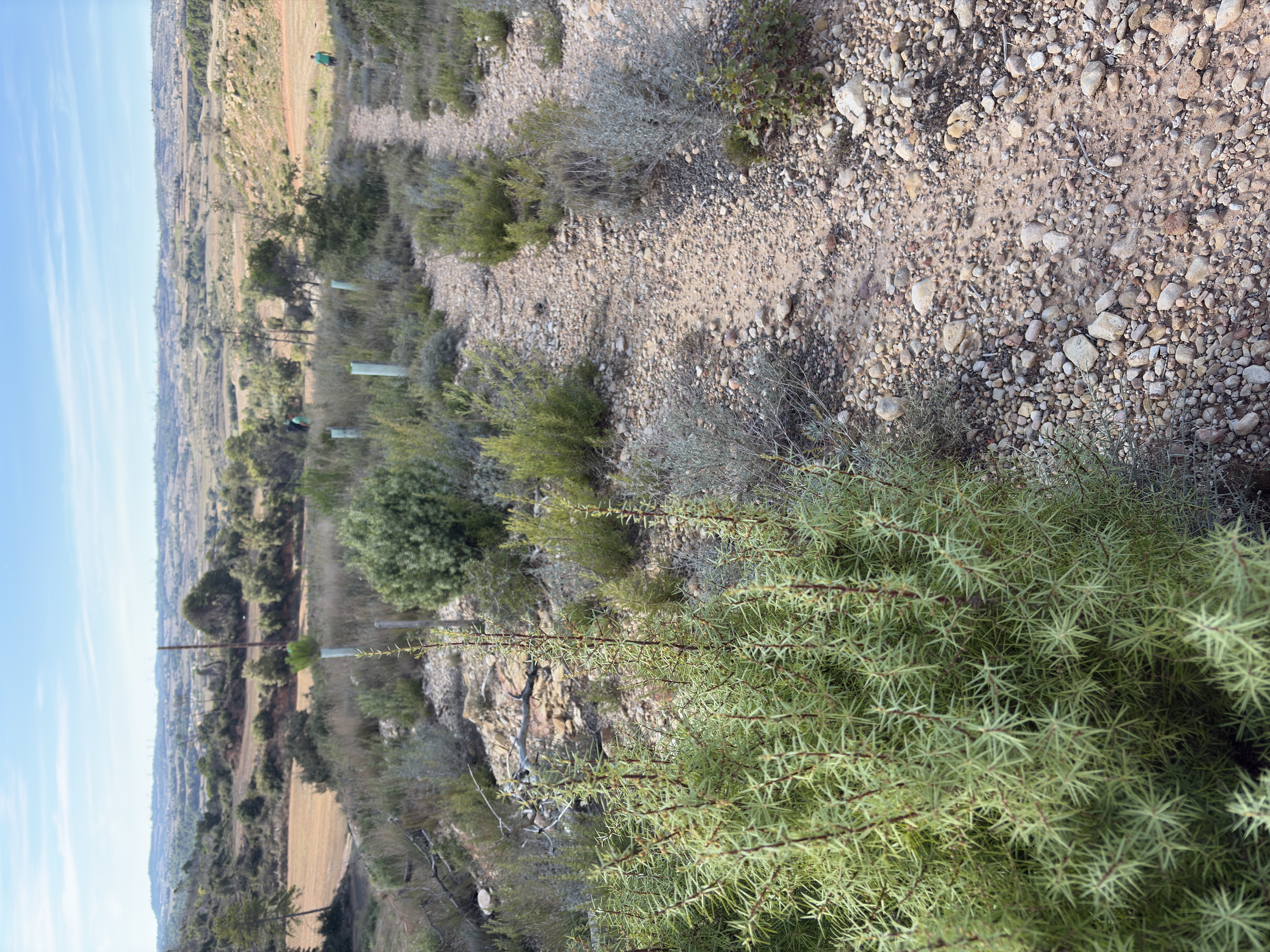 Durante nuestra visita, comprobamos la tasa de supervivencia de los árboles, y nos complace informar de que están prosperando. La plantación también ha ayudado a impulsar la regeneración natural en todo el lugar, con arbustos y plantas aromáticas que poco a poco se van apoderando de las colinas rocosas. Es asombroso ver cómo el ecosistema empieza a recuperar su equilibrio.
